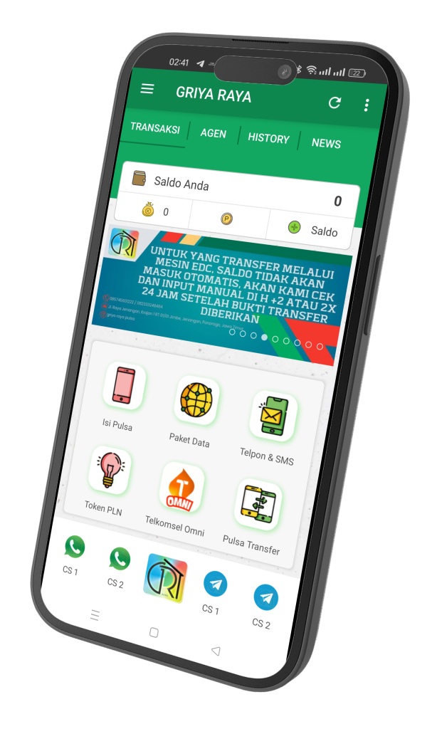 GRIYA RAYA PULSA adalah perusahaan distributor pulsa elektronik yang berpengalaman dalam menyediakan layanan isi ulang pulsa elektrik murah dan terpercaya. Dengan aplikasi mobile yang user-friendly, kami memudahkan Anda untuk melakukan berbagai transaksi kapan saja dan di mana saja